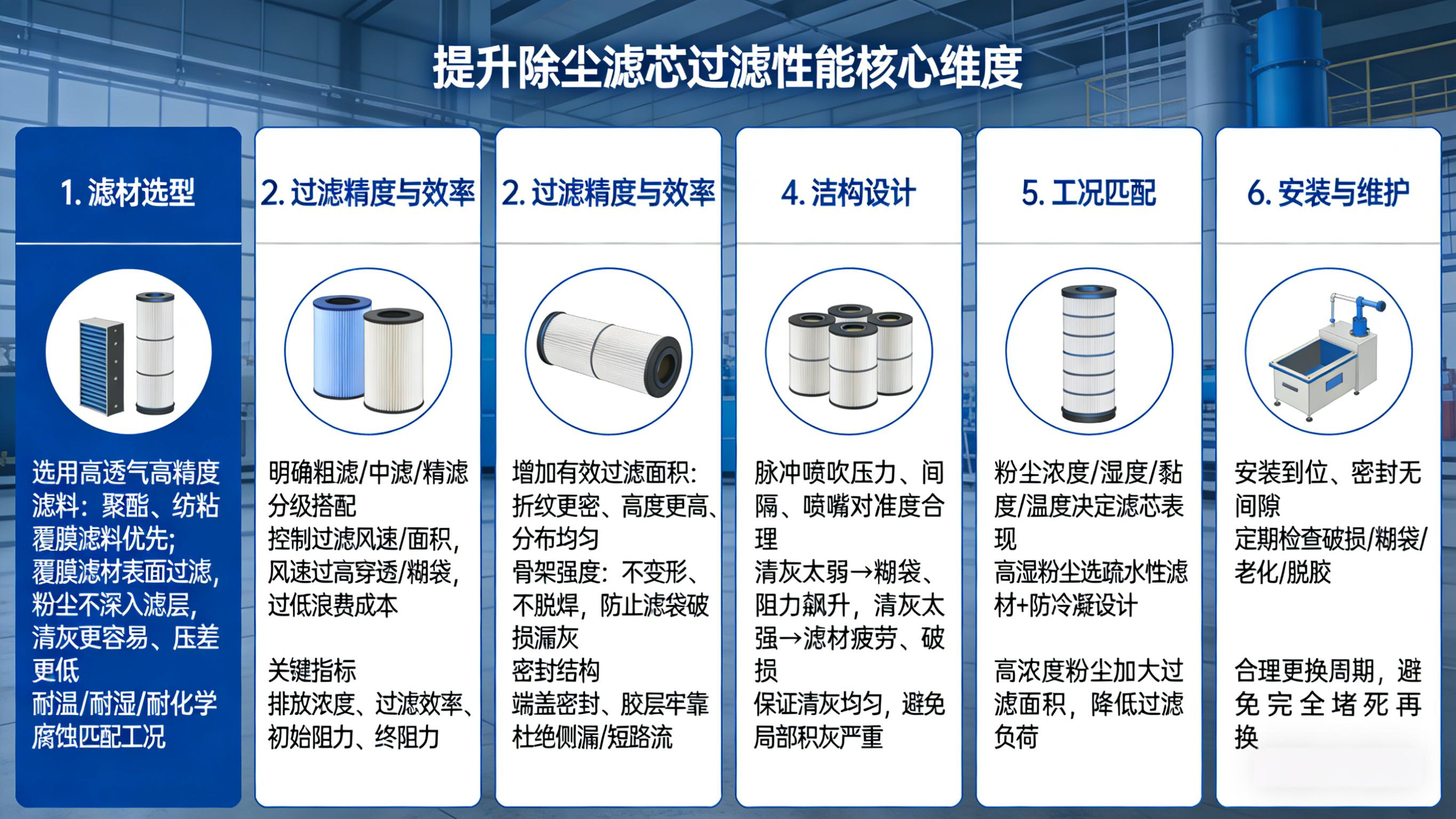 想稳定、明显提升除尘滤芯过滤性能,其实就抓这几个核心维度: