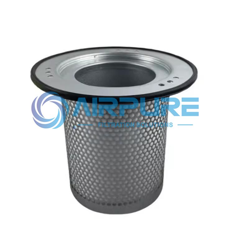 空压机油分QGN001-051-300的核心功能是油气分离与净化。其工作流程为:主机排出的含油压缩空气先进入冷却器,经机械分离后进入油气滤芯;滤芯通过拦截、聚合作用捕捉气体中的油雾,形成油滴后经底部回油管回流至润滑系统;最终确保压缩机输出洁净、高品质的压缩空气,同时去除空气中的固态尘埃与液态物质。